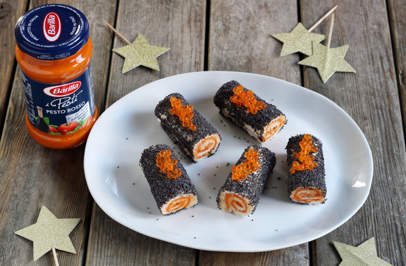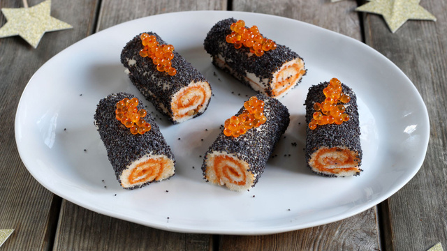 8Décorez-les avec les oeufs de saumon, déposez-les sur une assiette de service et servez.