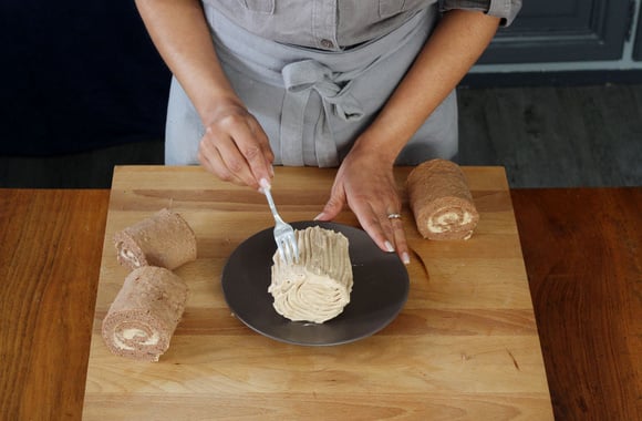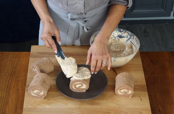 17Coupez le roulé obtenu 4 mini-bûches.