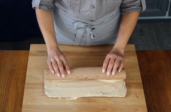 15Commencez à rouler délicatement la génoise sur la garniture, en serrant bien.