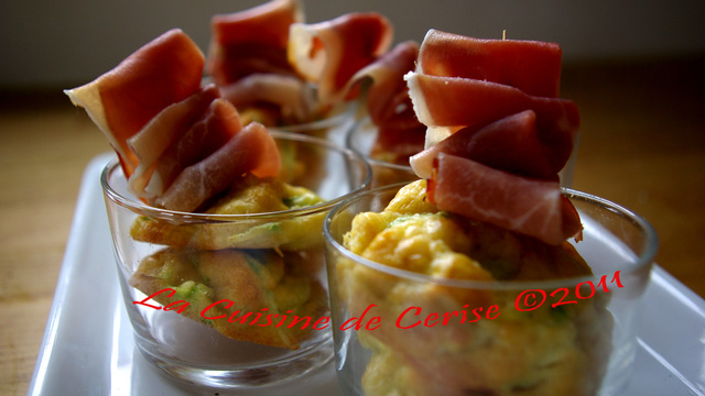 Avant de servir, décorez chaque cake avec une bande de jambon pliée en accordéon sur une pique en bois.
