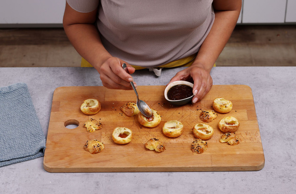 Garnissez le fond de chaque chou d’une demie cuillère à café de confiture de figues.