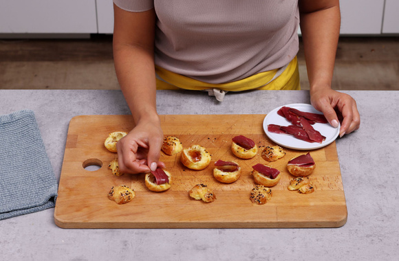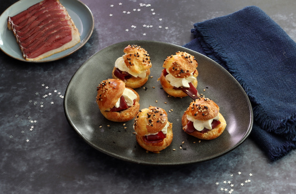 Des mini-choux pour l'apéritif savoureux grâce au Magret fumé et faciles à préparer grâce à notre recette détaillée en étapes.