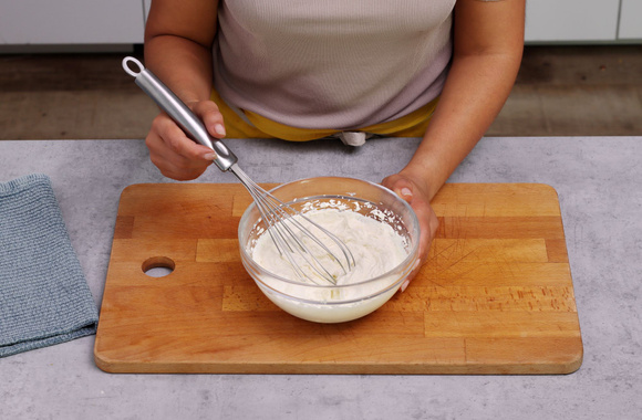 Montez la crème en chantilly à l'aide d'un fouet électrique.
