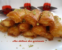 Voici une petite gâterie à déguster le soir autour d'un bon thé vert. Des mini cigares fourrés à la crème de lait et parsemés de pistaches concassées. Le pliage est très facile à réaliser il faut seulement bien badigeonner les feuilles de filo ou des feuilles de brique. Pour la crème et le sirop, il est préférable de les préparer bien à l'avance et les laisser refroidir.