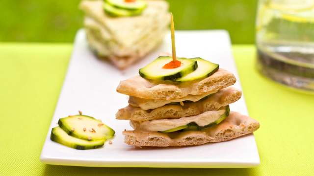 Recouvrez d'une autre tranche de pain suédois, et fixez avec une pique.