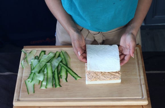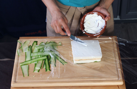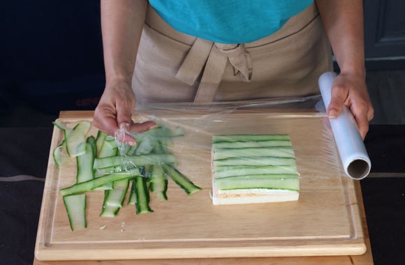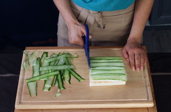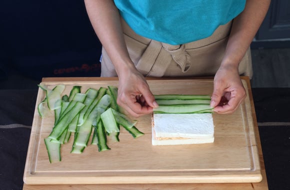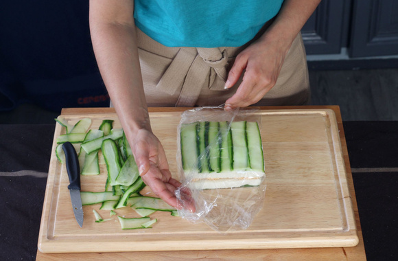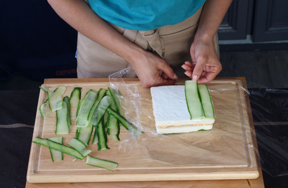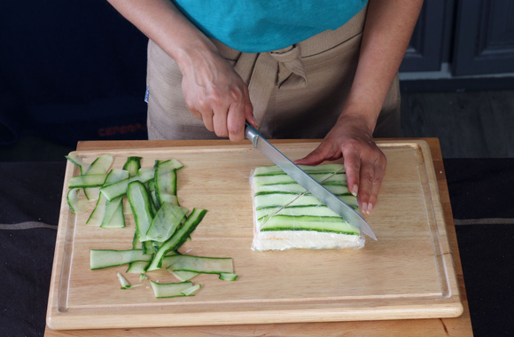 9Ajoutez des lamelles de concombre, cette fois-ci verticalement.