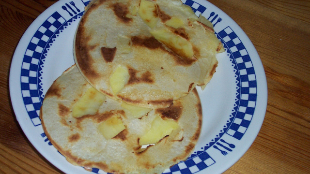 Graisser la crépière électrique et faire chauffer, déposer quelques morceaux de pommes, les laisser dorer et déposer la pâte.