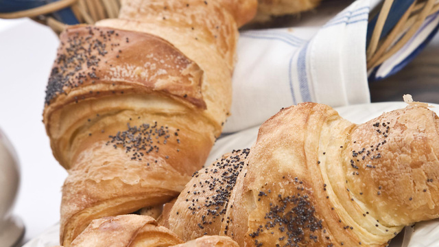 Roulez les triangles en croissants, badigeonnez-les de jaune d'oeuf au pinceau, puis, parsemez de graines de votre choix (pavot, sésame, ...)