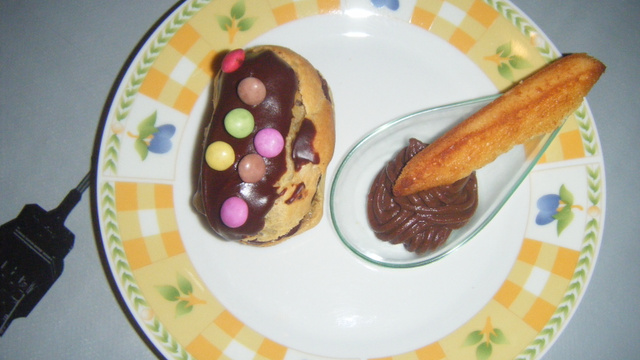 Ajouter le mélange d'oeufs et de sucre au lait chocolaté et y ajouter la c à s de farine. Remettre sur le feu à feu léger jusqu'à obtention d'une pâte pas trop consistante. Ouvrir les boudins en deux et a l'aide d'une poche à douille. Garnir la moitié d'un boudin. Pour le glaçage de l'éclair mélanger les carrés de chocolat et du lait au micro-ondes et disposer sur l'éclair ! Et sans oublier de rajouter quelques smarties ! Bon dessert !