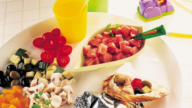 Laissez votre enfant composer ses papillotes selon ses envies, en mélangeant les ingrédients de son choix. Fermez les papillotes en pliant les bords du papier sulfurisé.