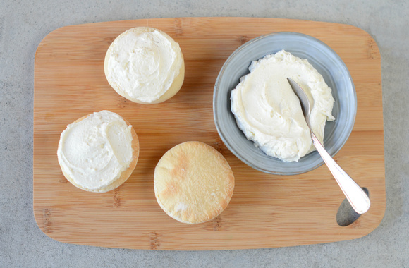 7Badigeonnez les mini pizzas de crème fouettée à la vanille.