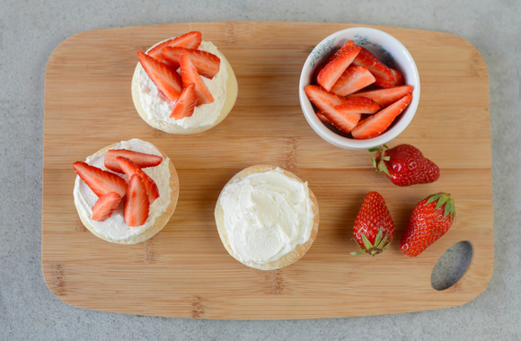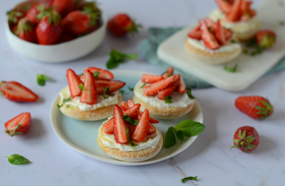 9Décorez harmonieusement vos mini pizzas avec les quartiers de Fraises du Périgord IGP.