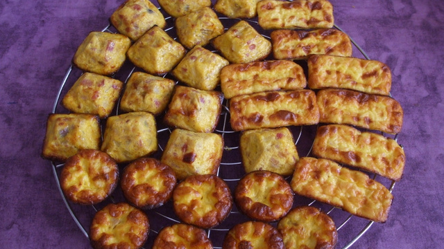 - 2Verser dans vos moules, vous pouvez ajouter des miettes de thon, lardons-oignons, jambon fromage..Cuisez à 170°C