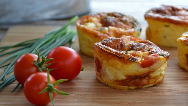 Recette "vide-frigo" ! Un reste de poulet rôti de la veille, un morceau de cheddar qui s'ennuie dans le frigo... quelques tomates cerise et de la ciboulette du jardin... faisons des mini-quiches ! A déguster à l'apéro ou en entrée avec une petite salade :-)