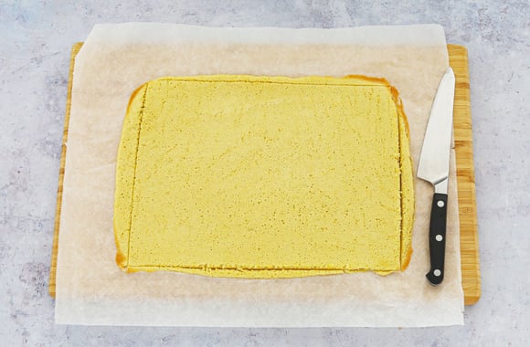 Parez les bords du biscuit avec un couteau aiguisé pour obtenir un rectangle régulier.
