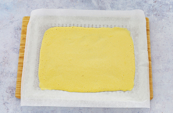 4Ôtez la plaque du four, couvrez la pâte encore chaude avec un torchon propre humide et laissez refroidir (le torchon humide empêche à la pâte de dessécher).