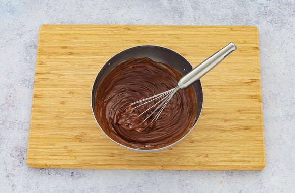 Hors du feu, versez-la sur le chocolat. Mélangez avec un fouet, jusqu'à obtenir une ganache lisse de la consistance d'une pâte à tartiner. Laissez refroidir.