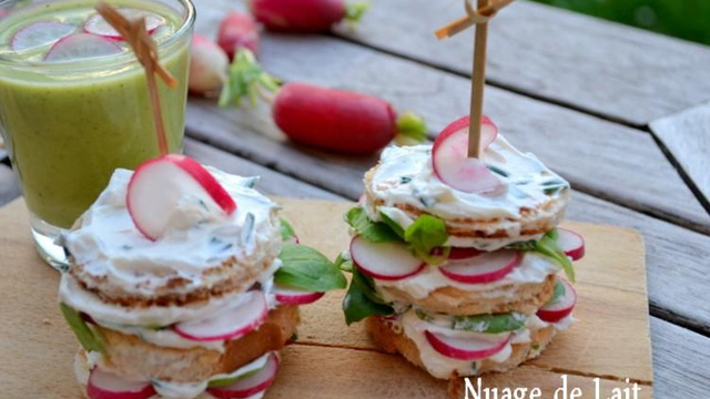 Un mini sandwich servi en entrée et qui accompagne parfaitement une verrine de soupe ou gaspacho de courgette.