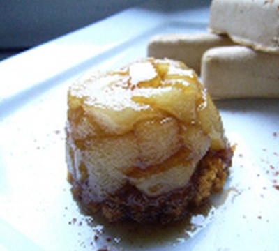 Des poires caramélisées dréssées sur une base au pain d'épices