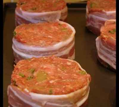 Retirer les cercles délicatement et entourer chaque pain de poitrine fumée.