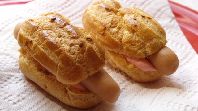 La version sucrée du célèbre sandwich à la saucisse, ici la saucisse est de pâte d'amande, les petits pains en pâte à choux, un régal à confectionner avec de petites mains !