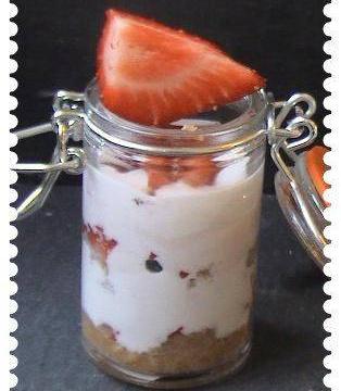 - 3Disposez la moitié de cette pâte dans le fond des verrines en tassant bien.Coupez les fraises en petits dès et disposez en quelques un sur la couche de biscuits.