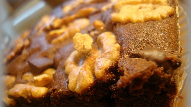 Parsemez de pépites de chocolat et de cerneaux de noix.