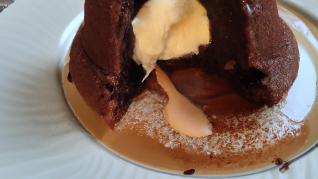 Gâteau moelleux au chocolat au coeur tiède et fondant, accompagné d'une crème glacée.