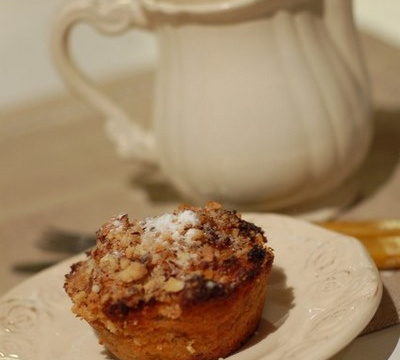 Répartir dans les moules légèrement beurrés.Parsermer du mélange noisettes-pistaches-noix concassées.Faire cuire 20 minutes, laisser tiédir avant de démouler. Saupoudrer de sucre glace.