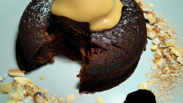 Servir tièdes les moelleux, avec une quenelle de glace vanille, un tourbillon de ganache et qqs filets de caramel liquide