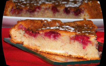 Terminer en ajoutant les framboises encore surgelées. versez la pâte dans un moule beurré et fariné puis enfourner pour une trentaine de minutes à 180°C.
