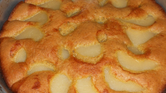 Pelez et épépinez les poires. Tranchez-les en fins quartiers, et arrosez-les d'un demi-jus de citron,puis enfoncez-les dans la pâte.