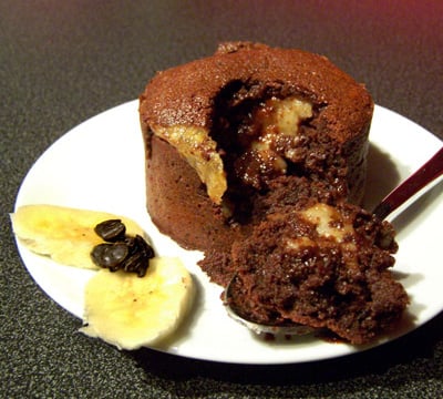 Un moelleux exotique au chocolat noir, coeur de banane-coco- chocolat blanc-rhum qui remonte le moral de mes Nounours !
