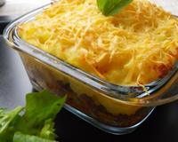 Mettez la viande hachée dans un plat à gratin ou des petits plats individuels) puis recouvrez de purée. Saupoudrez de fromage râpé et enfournez pour 10 minutes. Une fois ce temps écoulé, passez votre four en mode grill et laissez encore 5 minutes pour bien gratiner le fromage. Servez accompagné de salade verte.