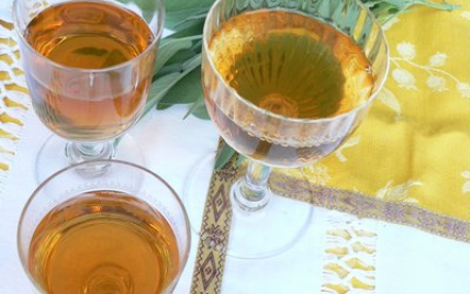 Chauffez dans un casserole, le vin, le sucre, la sauge, la menthe et le poivre.