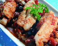 Régler la température au maximum, le minuteur sur 5 mn et la vitesse sur 'mélange 1' pour les faire revenir. Ajouter ensuite les tomates, les olives,le thym et le laurier dans le Bol du robot. Saler et poivrer. Régler la température sur 100°C, le minuteur sur 10 mn et la vitesse sur 'mélange 1'. Pendant ce temps,fariner légèrement la morue. La poêler rapidement dans de l'huile. - 3A l'issue des 10 mn, ajouter la morue dans le Bol du robot.