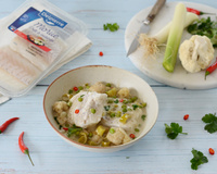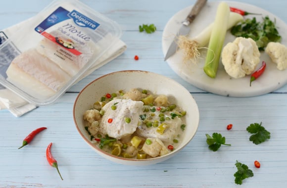 Ce plat nous fait partir en Asie avec ses saveurs sublimes. Ici la morue est pochée au lait de coco et à la citronnelle puis servie avec des légumes au curry vert.