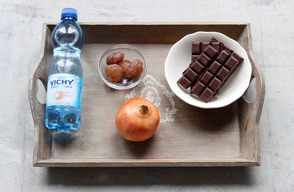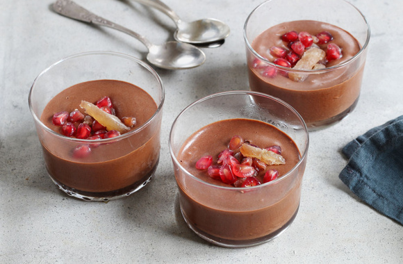 9Servez la mousse dans des coupes avec quelques graines de grenade et des lamelles de marrons.