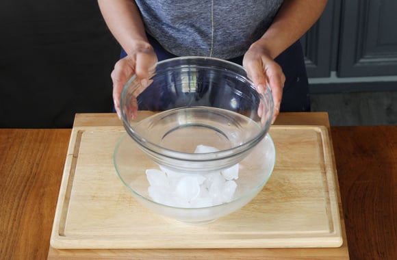 6Mettez les glaçons dans un grand saladier puis mettez dessus un saladier plus petit.