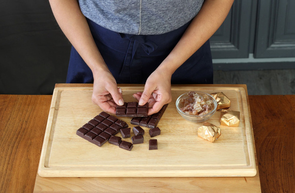 3Coupez le chocolat en morceaux.