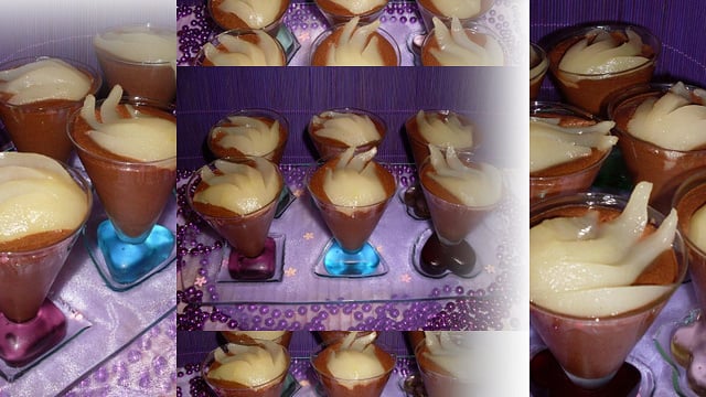 Cassez 2 oeufs en séparant les jaunes des blancs. Ajoutez ces deux jaunes ainsi que deux cuillères à soupe du sirop de cuisson des poires au chocolat tiédi en mélangeant.