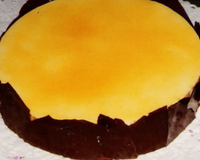 Une fois refroidi - garnir le dessus de gelée - décercler l'entremêts - entourer les cotés de morceaux de chocolat