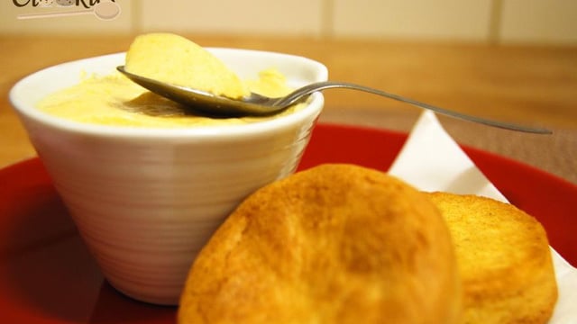 Commencer par battre les jaunes d'œufs et le sucre ensemble dans une terrine puis faire fondre le beurre et l'ajouter au mélange œufs et sucre. - 7