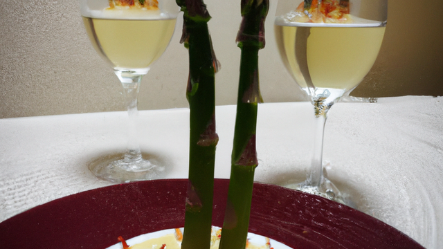 Verser alors dans la casserole, le vin blanc et les asperges en tronçons, laisser mijoter une dizaine de minutes.