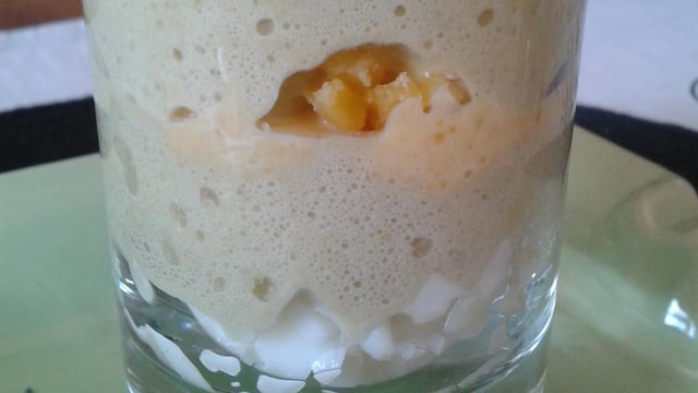 Mettre du blanc d'oeuf dans chaque fond des verrines. Ajouter la mousse d'asperges. Ajouter ensuite le jaune d'oeuf et finir par une autre couche d'asperges.