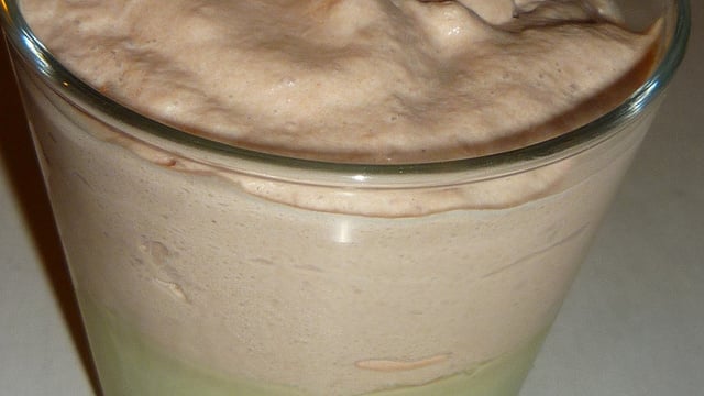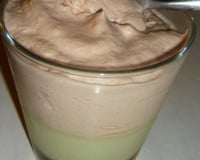 Il s'agit d'une superposition de purée d'avocat relevée et d'une véritable mousse de crevettes.