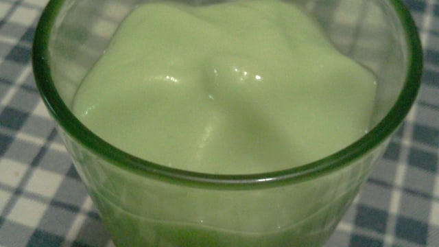 C'est une mousse à la pomme et à l'ananas. La mienne est verte car j'ai rajouté du colorant alimentaire.