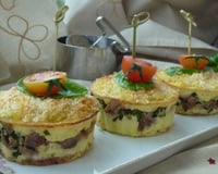 Réinventer vos recettes de purée de pommes de terre, donner le ton à vos buffet ! A passer au four à la dernière minute ces petits' Parmentiers - Mousselines 'réalisés dans des mini-moules, ou des cercles séduiront vos invités. A déguster du bout des doigts... en attendant les feux d'artifice de l'été ..