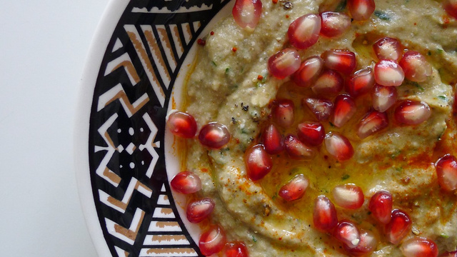Dresser dans un ramequin, décorer de persil haché et verser dessus un filet d'huile d'olive. Servir avec des grillades en guise de condiment ou de sauce (comme une mayonnaise). Cette sauce fait partie du mezzé libanais.