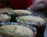Verser dans les moules à muffins, ajouter un carreau de chocolat dans chaque moule.